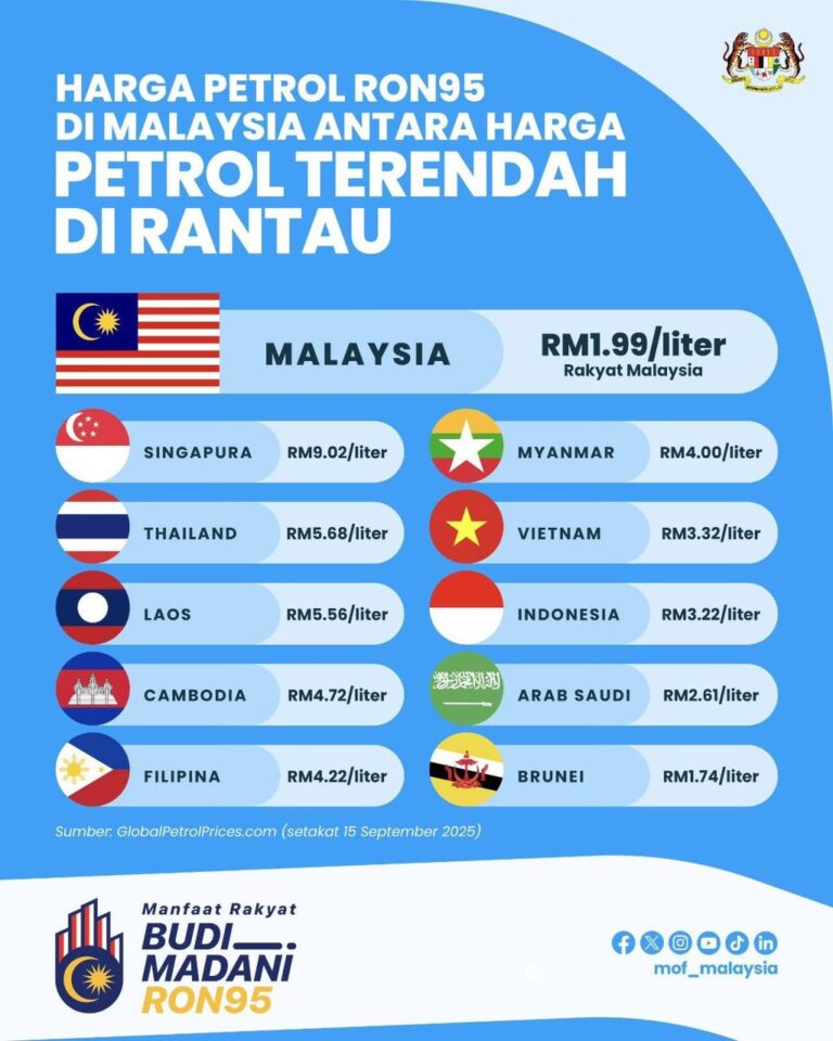 BUDI95 memberi hak kepada rakyat Malaysia untuk membeli petrol pada harga antara yang terendah di rantau. BUDIMADANIRON95 ManfaatRakyat